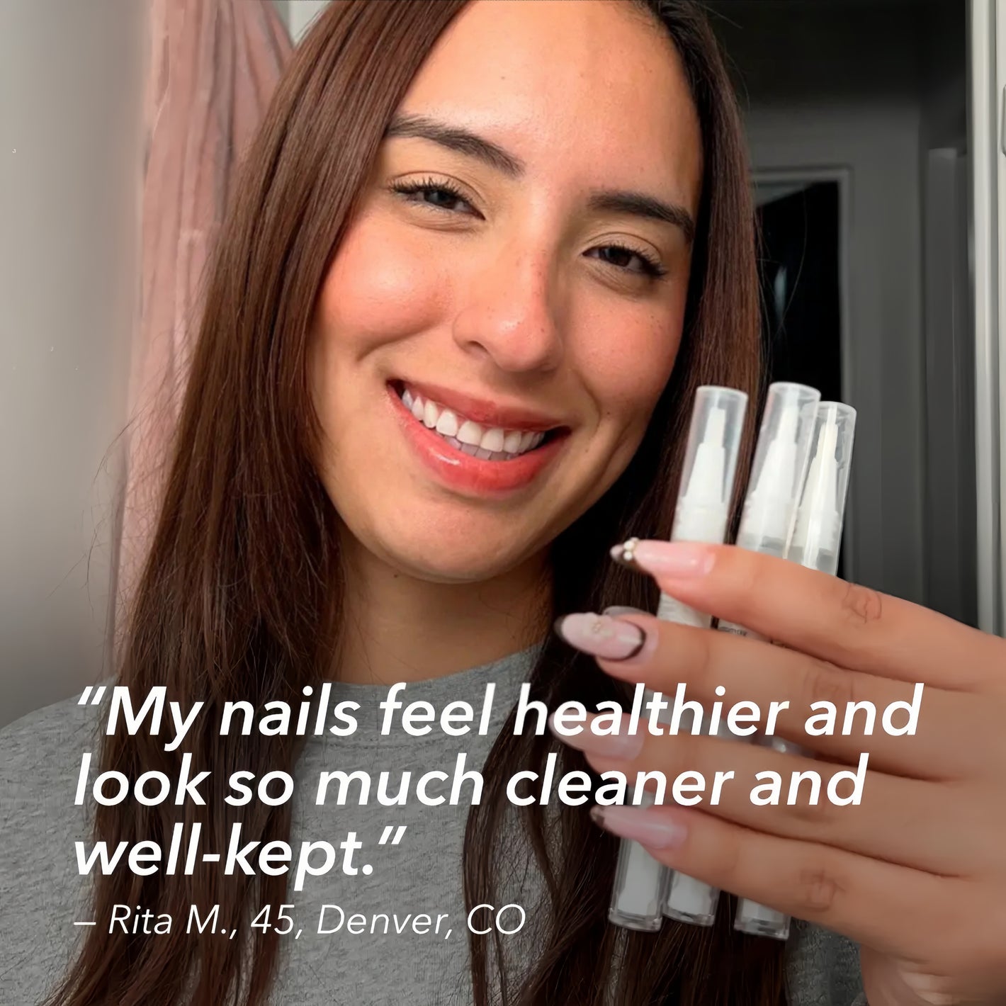 Our nail strengthening pen contains a blend of conditioning oils, peptides, and nourishing components designed to support smoother-looking, well-maintained nails. The formula also includes hydrating and replenishing elements — like botanical oils and vitamin-based moisturizers — to help keep nails and cuticles feeling soft, flexible, and comfortable during daily use.